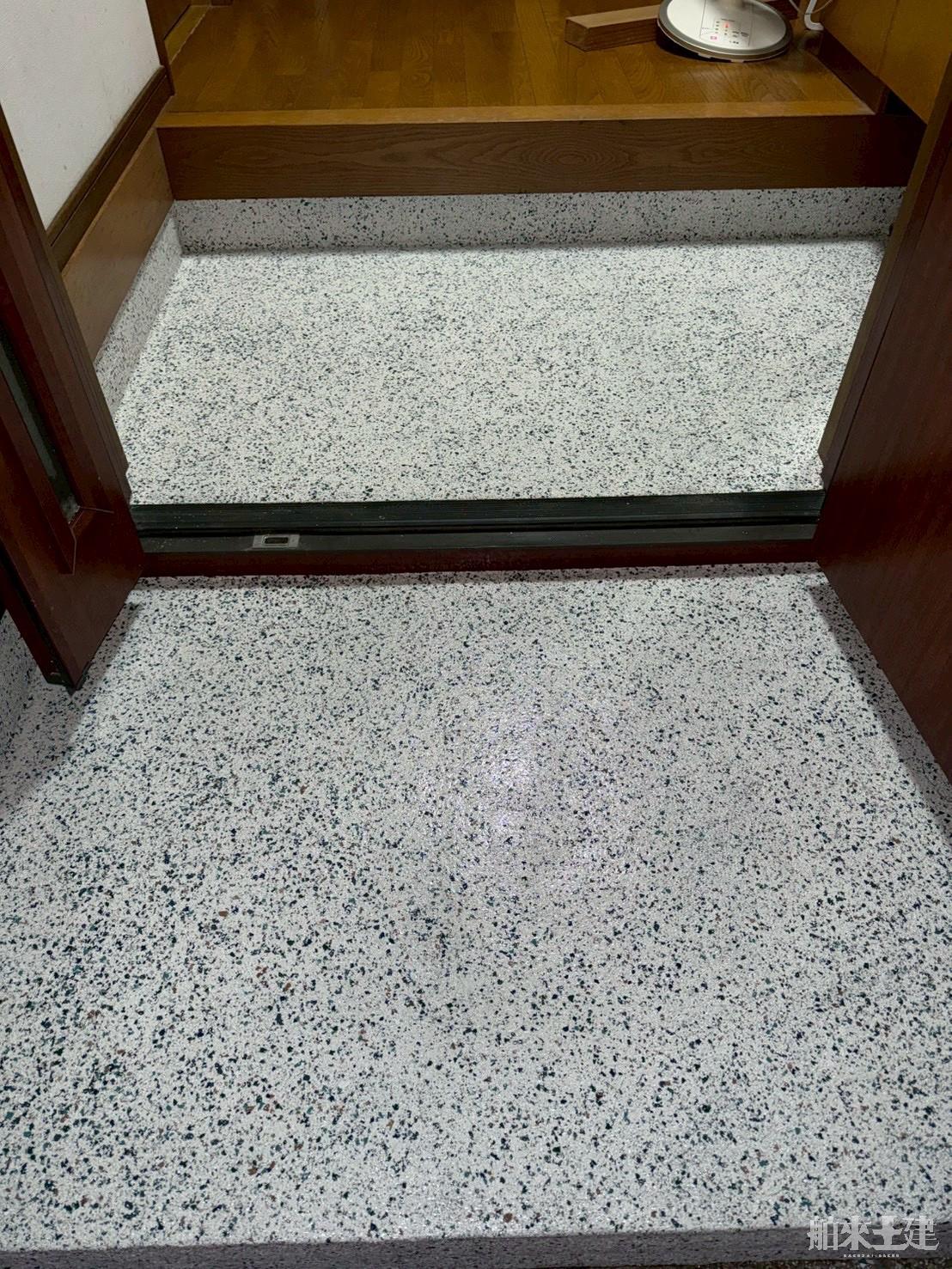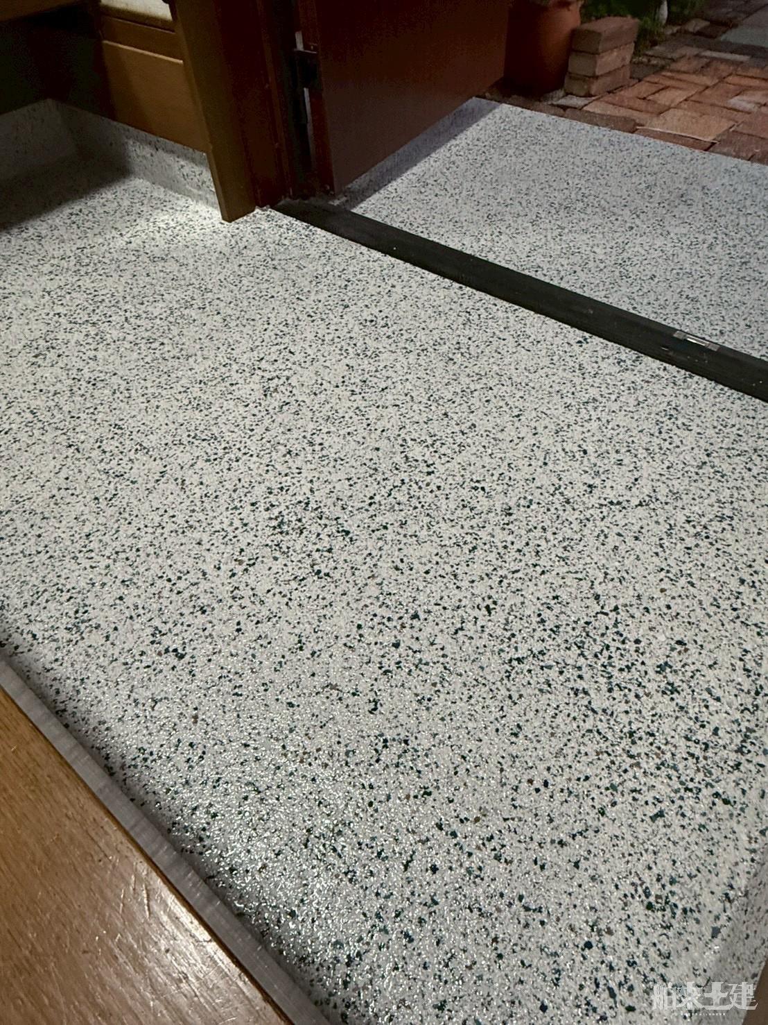 靴の脱ぎ履きや外からの砂・水分が入りやすい玄関は、どうしても汚れや傷が気になる場所ですが、ポリフレーク仕上げにすることで、耐久性とデザイン性を両立した空間に仕上がりました。
