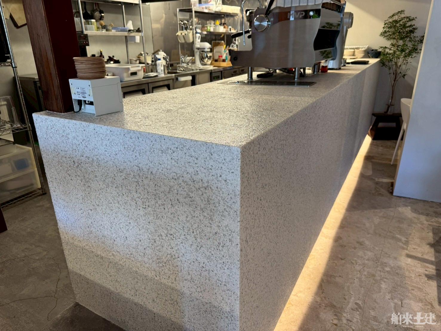 店内の印象を大きく左右するカウンターに、石のような質感と均一な美しさを持つ仕上げを採用しました。
