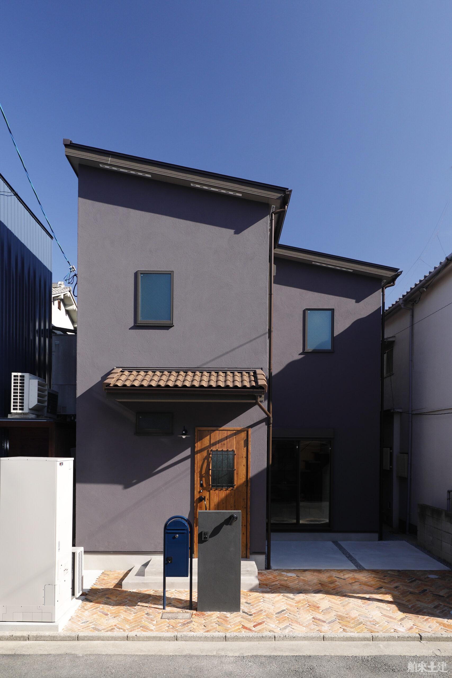 濃い色味の塗り壁の家にSOIが採用されました。