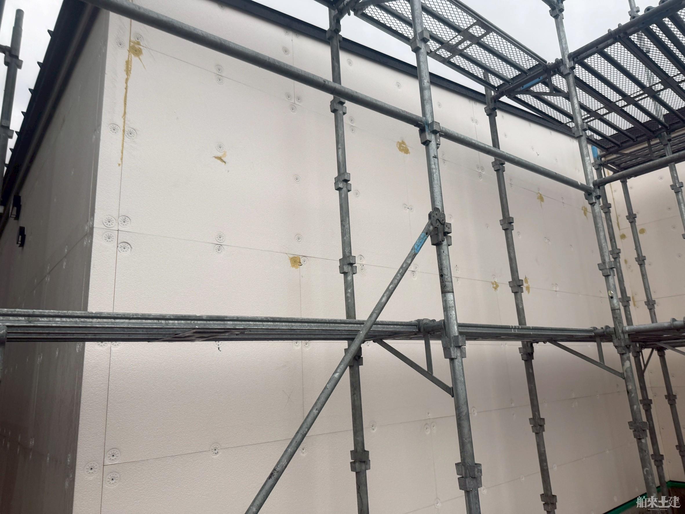 塗り壁を施工するときの下地はサイディングか、EPSと呼ばれる外断熱材です。