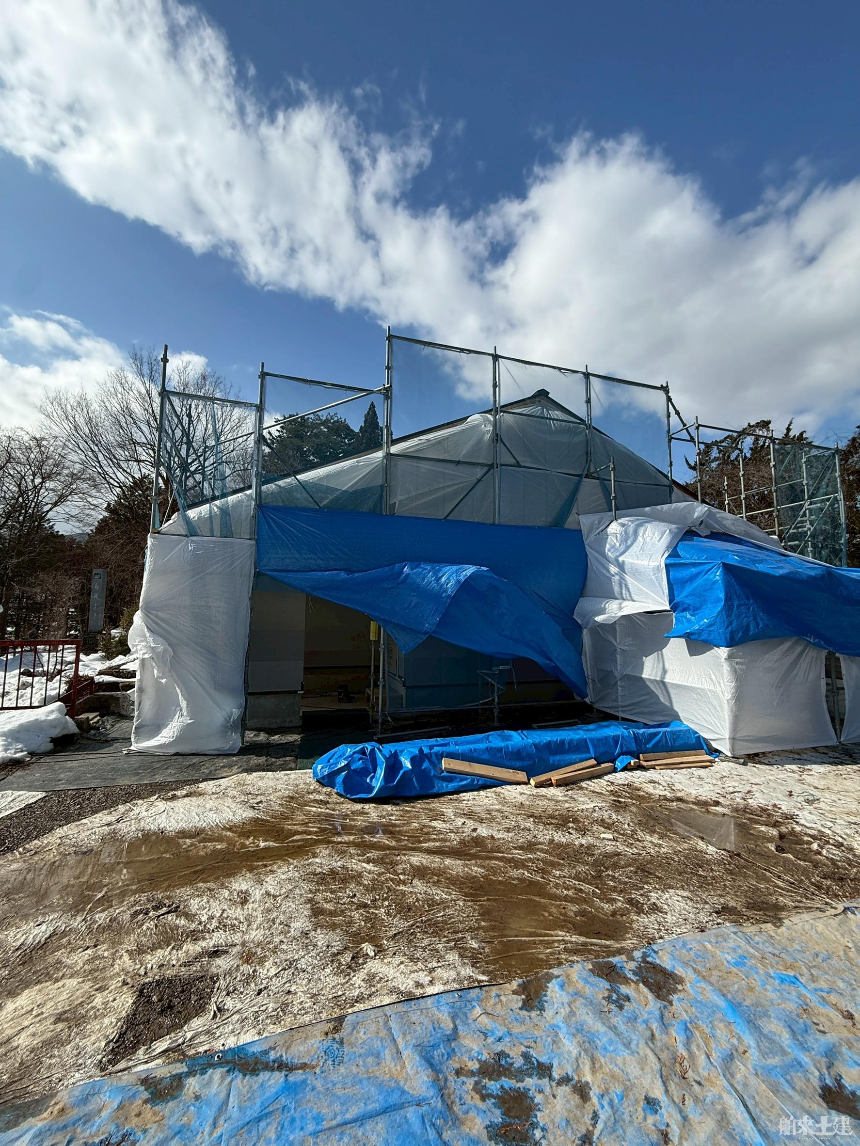 どうしても雪、雪解け水が外壁に付着する可能性があるのでしっかり密閉された空間で施工するような工夫がされてました!