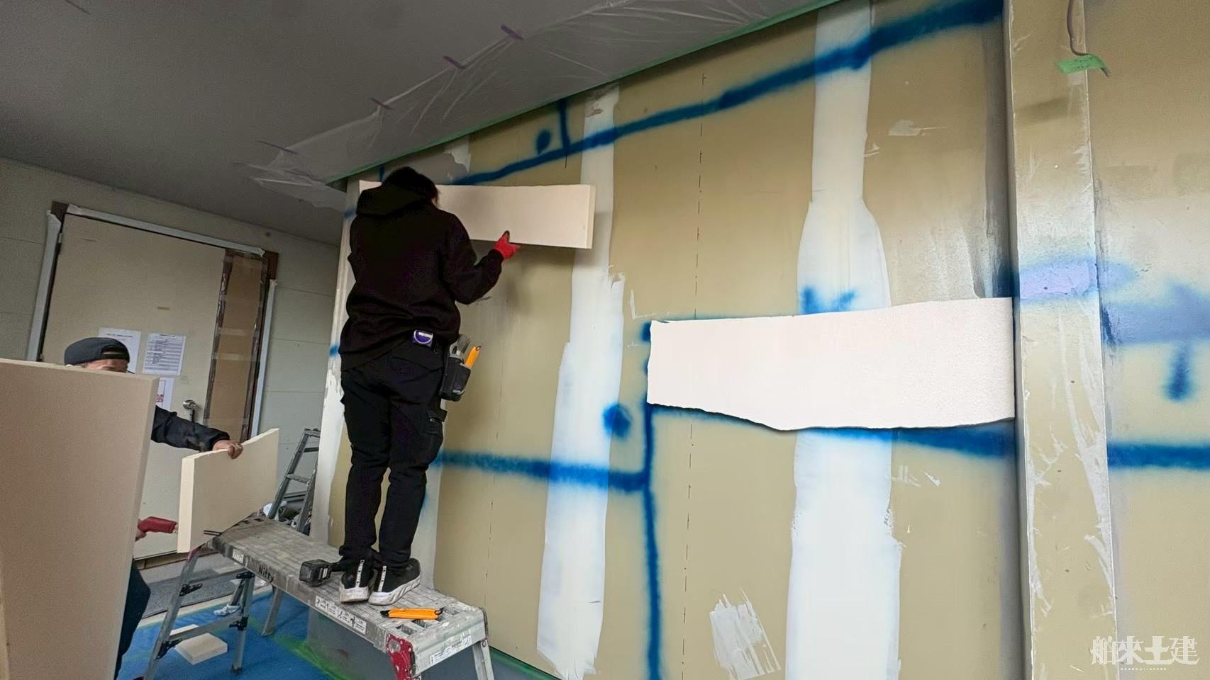 壁に貼っているのは外断熱などで使われる発泡材。たまに立体感が出ている造形がありますよね?