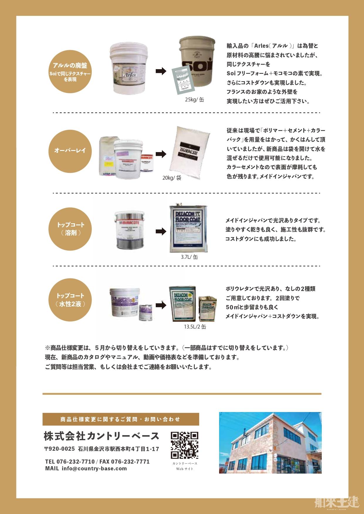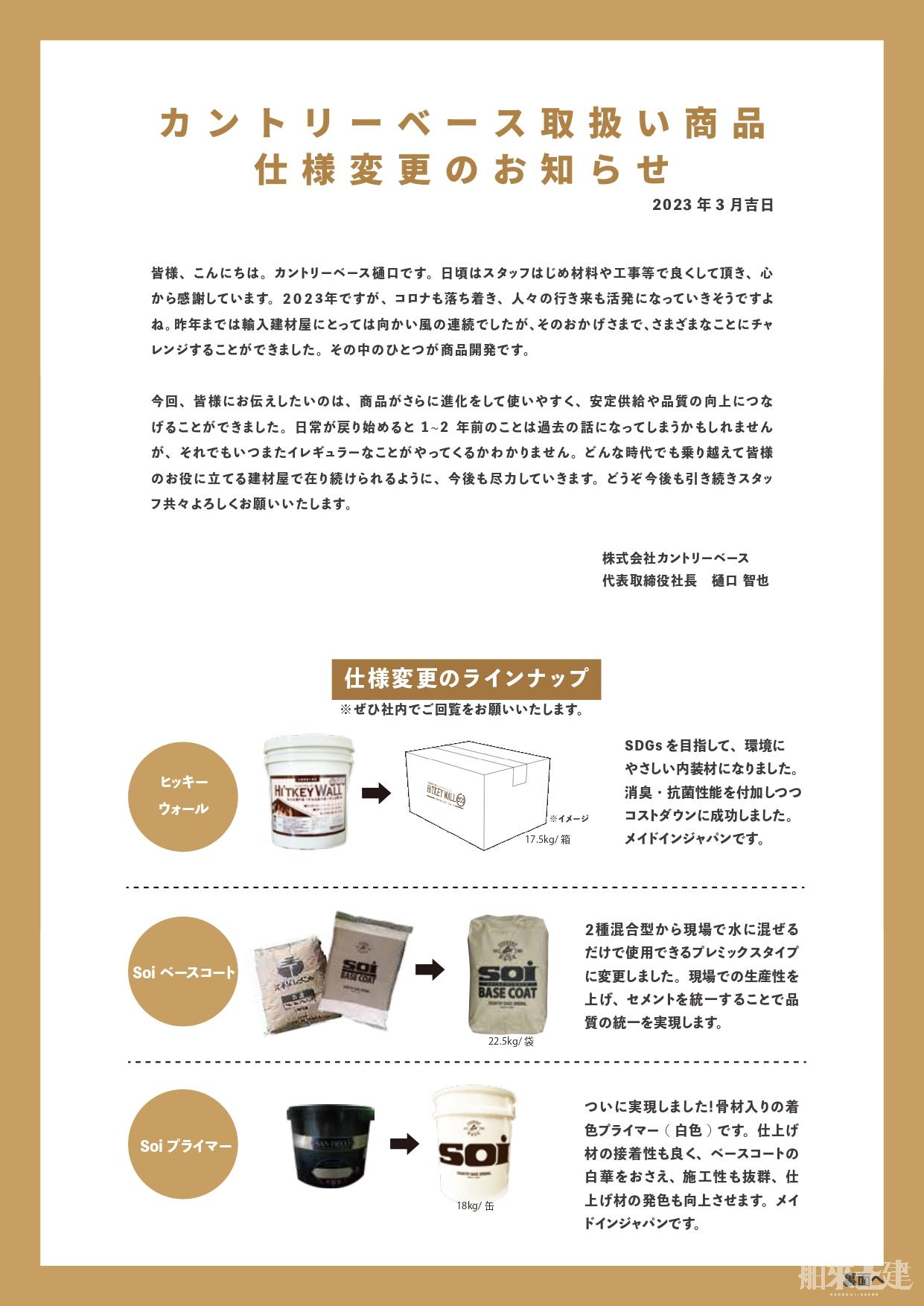 施工にあたり使用しておりますカントリーベース取り扱い商品の一部に仕様変更がございます。