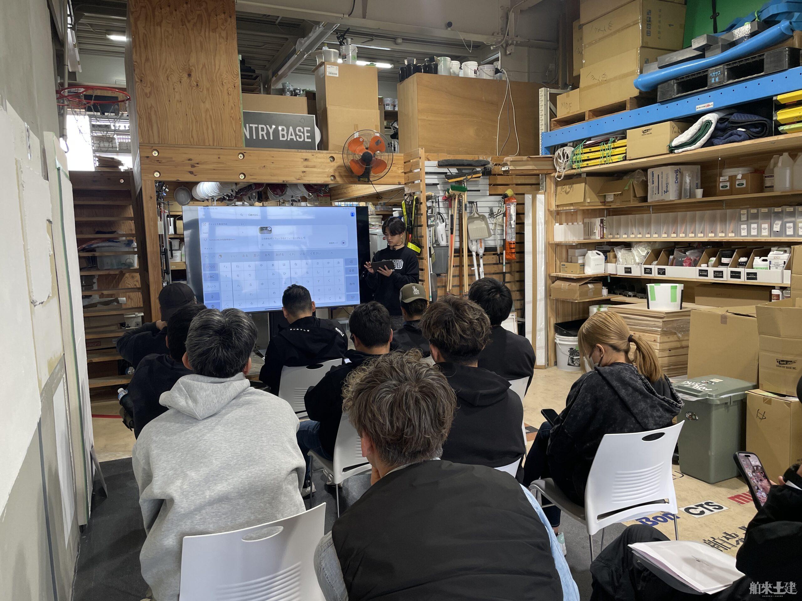 この研修では、製品の特徴や施工の流れを座学で学びながら、