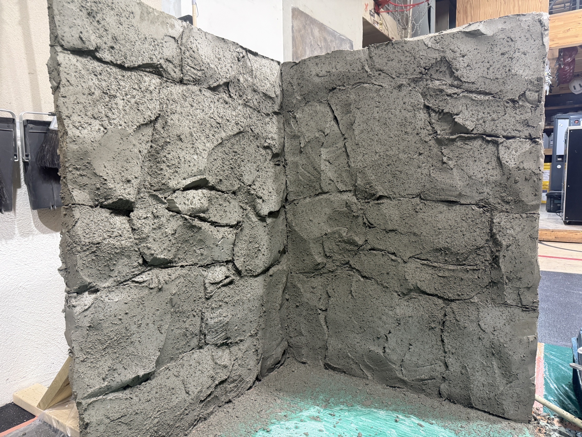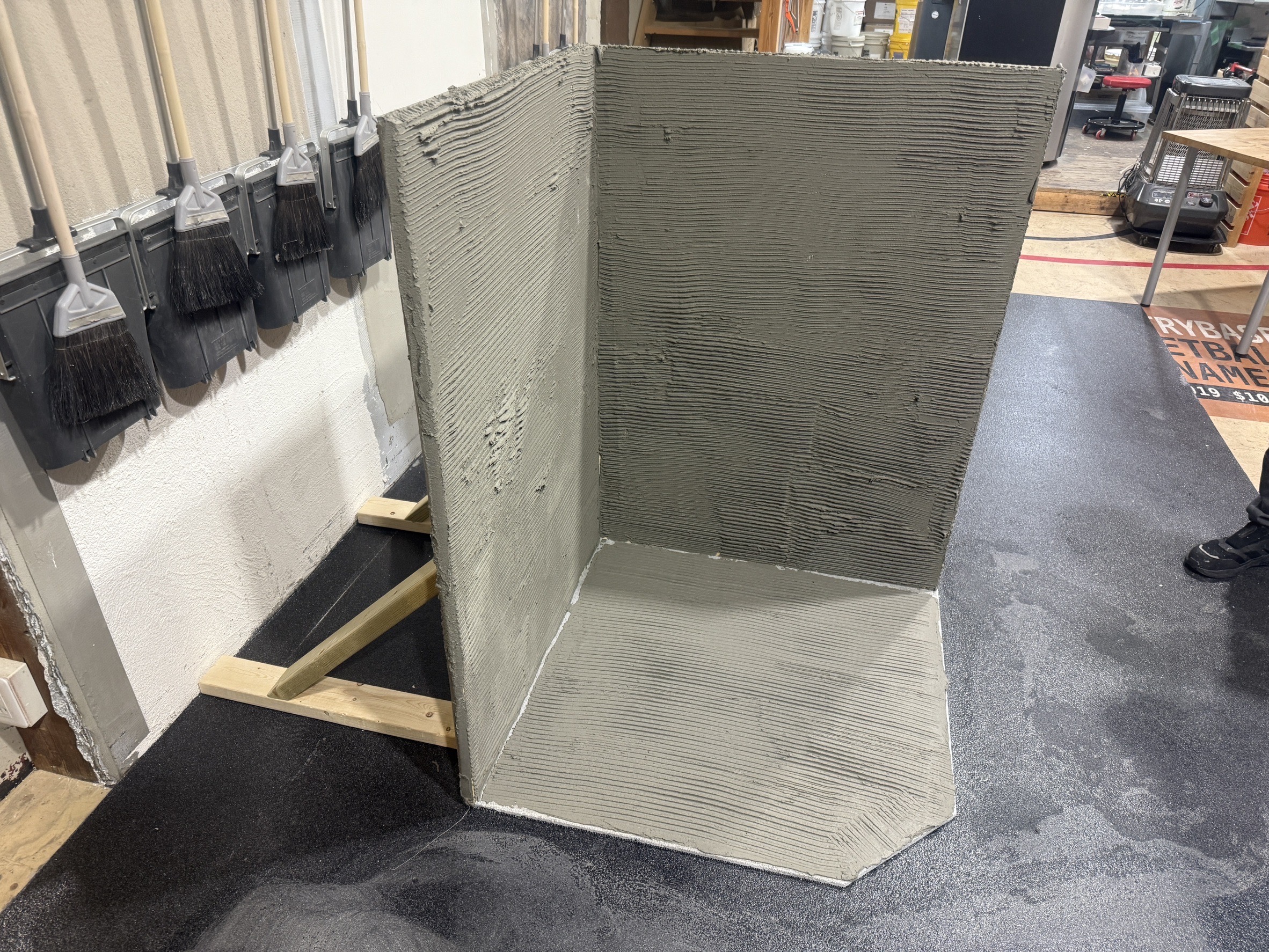 寸法に合わせて下地のパネルをカットしデザインコンクリートの施工