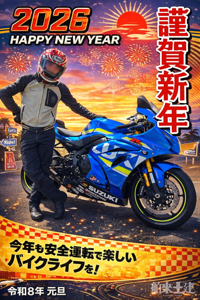毎年年始のどこかでバイクには乗れたので、Instagramには新年のあいさつがてら投稿していたのですが、今年は初乗りできなかったため、ChatGPT先生の力を借りて投稿しました。