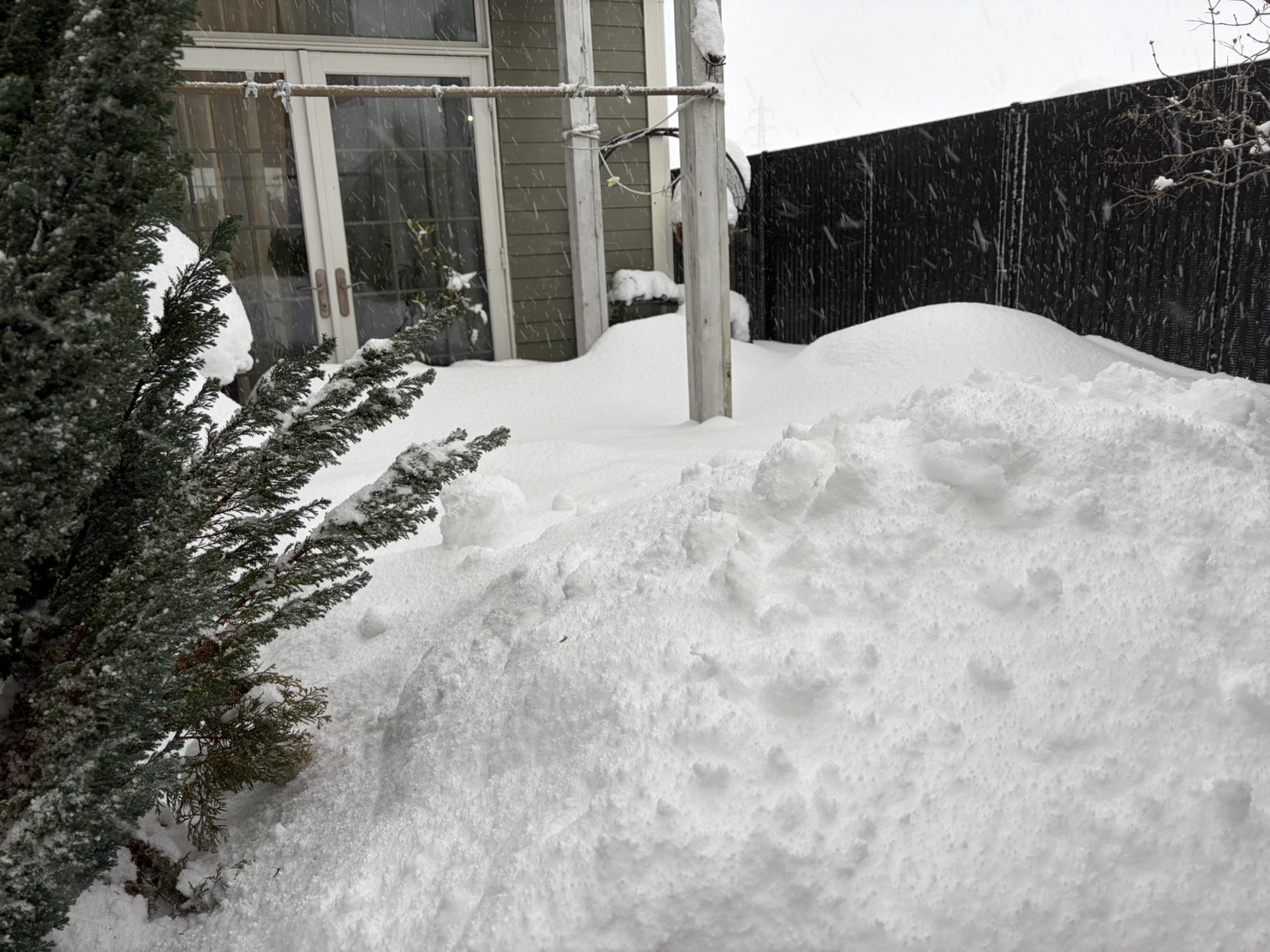 これは参った。リビングテラスドアから覗いたものですがヒェ~という感じです。