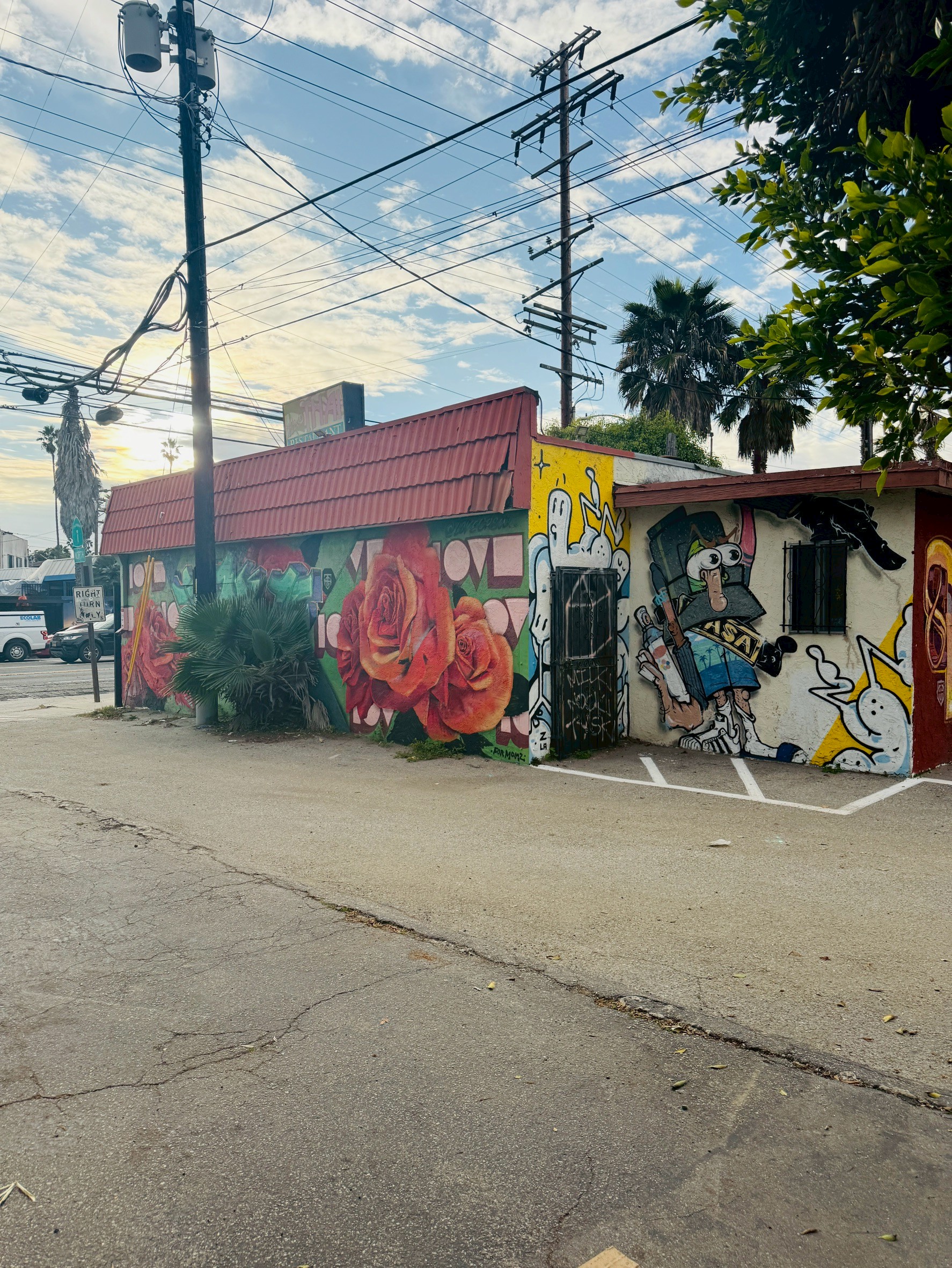 私の思うアメリカらしさ=グラフィティペイントのアートの壁と街並み