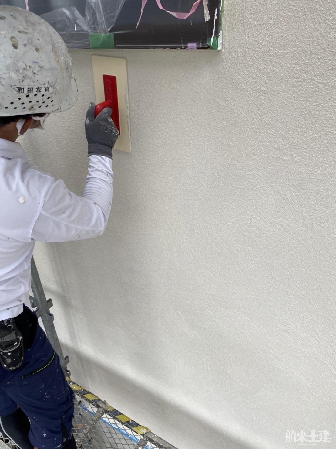 私達の土台ともなっている外壁の塗り壁なので下地から仕上がりに関しても職人さん達の完成度の基準は高いと思いますし、今後やっていきたいという職人さんを前にしてもその技術や効率は学びを得れると思います。