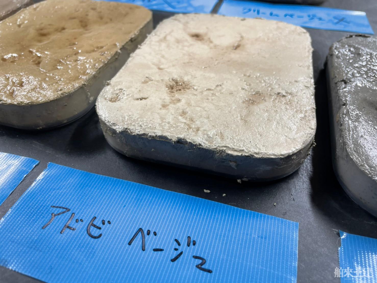 先日はそんな中での一つ、生コン打設後のスタンプコンクリートで使用する新しいカラーハードナーの色サンプル確認をしておりました。