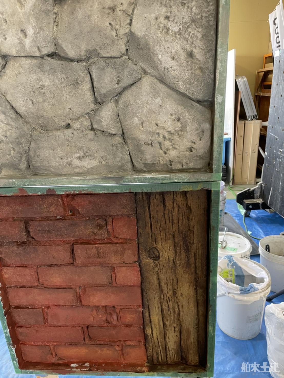 先日は主に土台作りの造形作業、今日はそれぞれ材料が乾いたので色を塗っていきます。