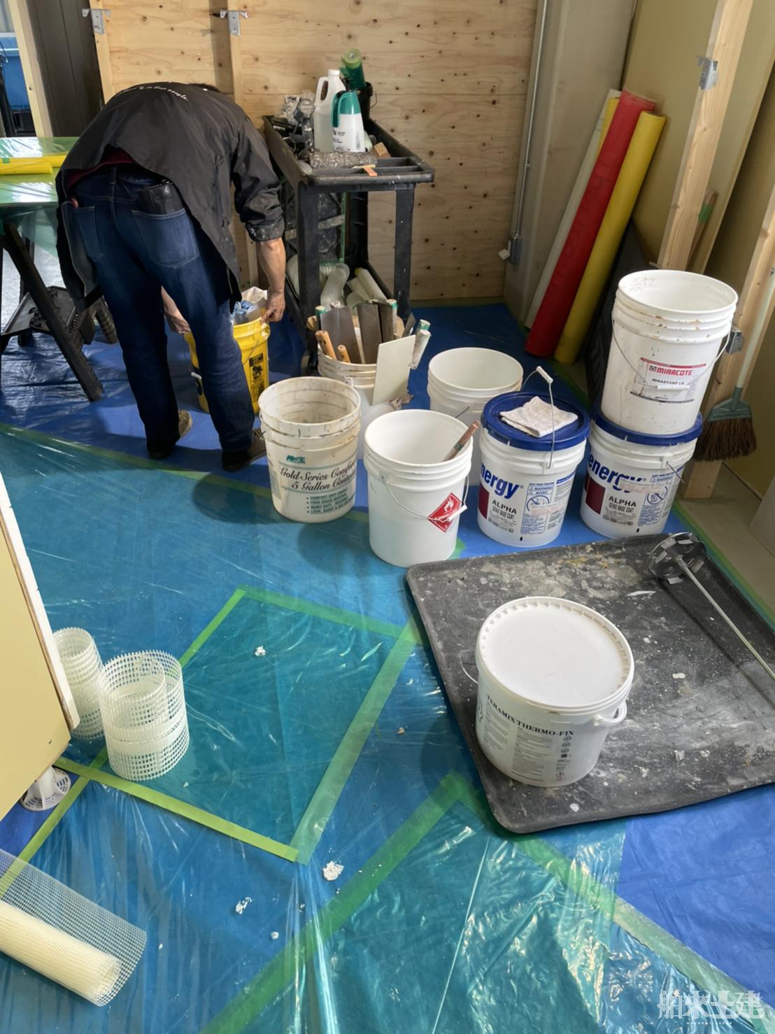 実際の座学の写真ですが、まず塗り付けの前に、材質の違いの勉強から入ります。