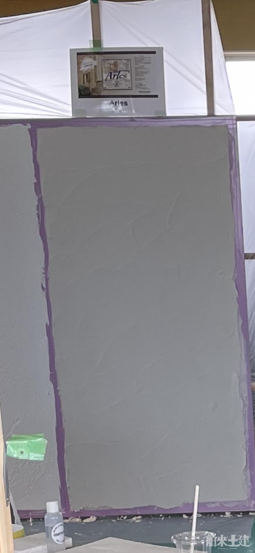 この際に実際の質感やテクスチャーの付け方を学んでいきます。ローラーで模様をつけたりコテの動かし方を変えてみたりで、様々な変化が生まれます。