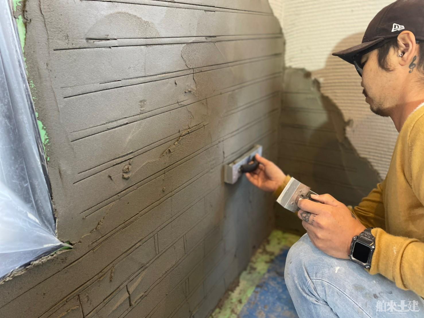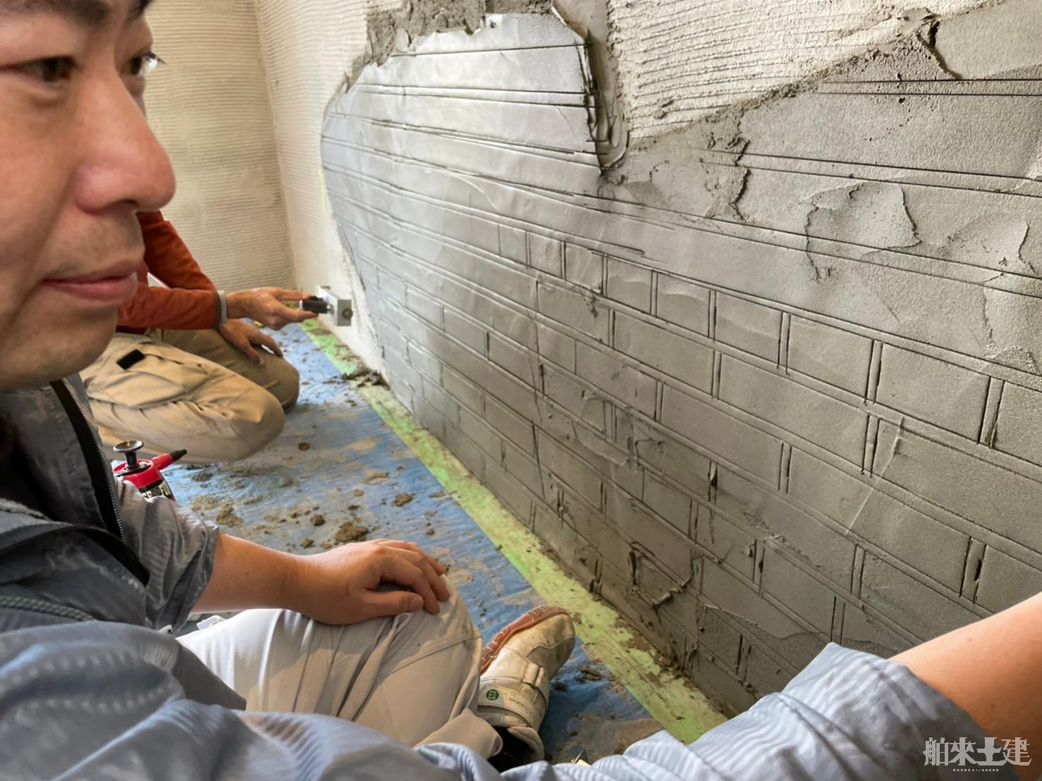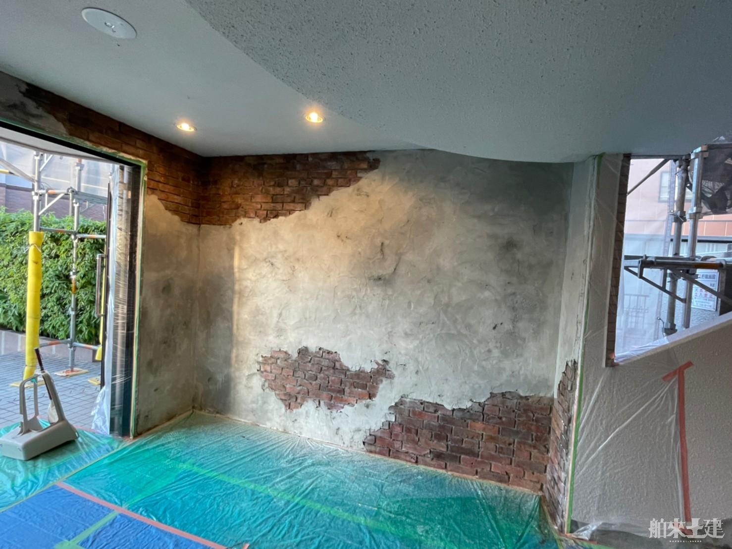 もとはモルタルの壁だったものに、レンガの造形を施工することになりました。