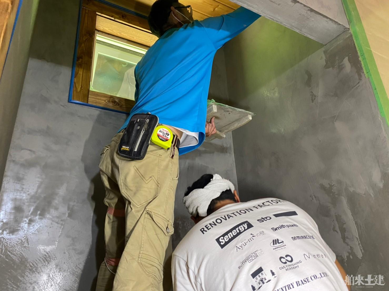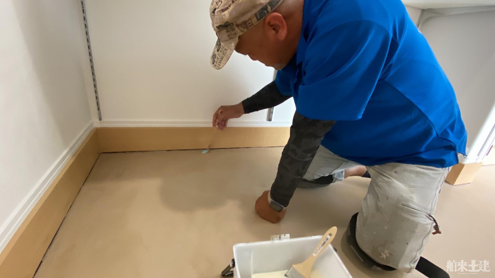 材料の攪拌から塗付まで一度見ていただいてから