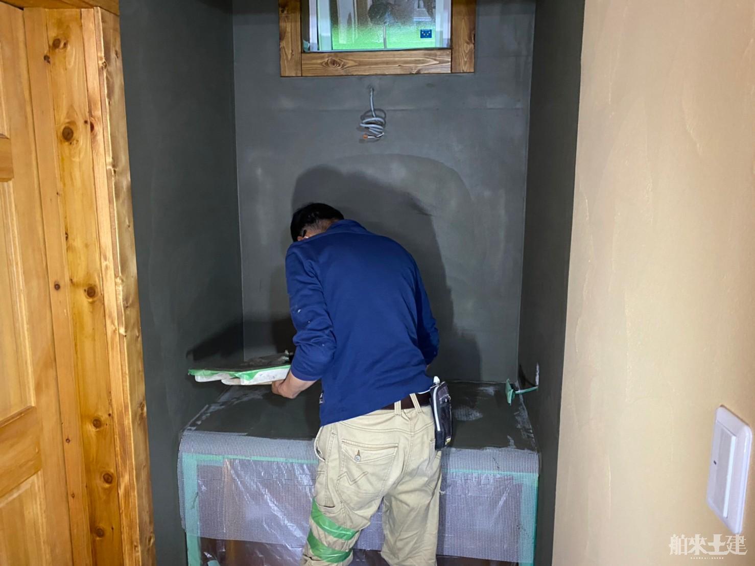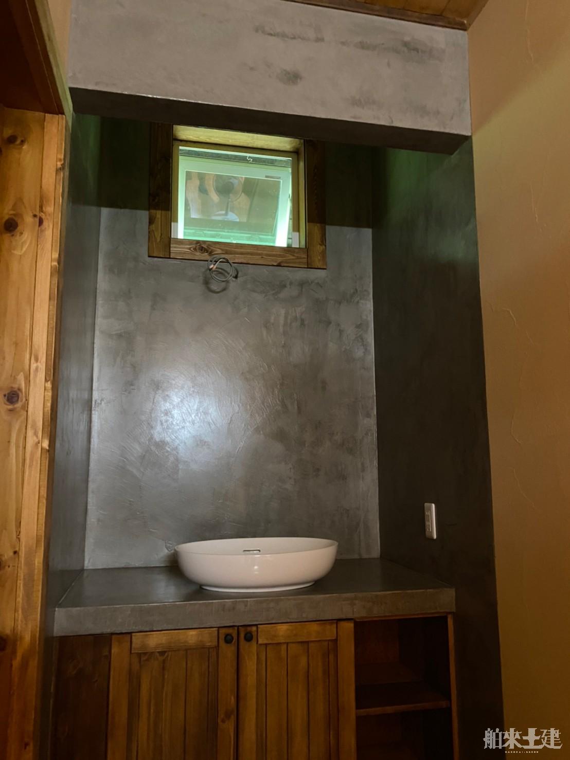 洗面カウンター付近でのMPCモルタル調施工