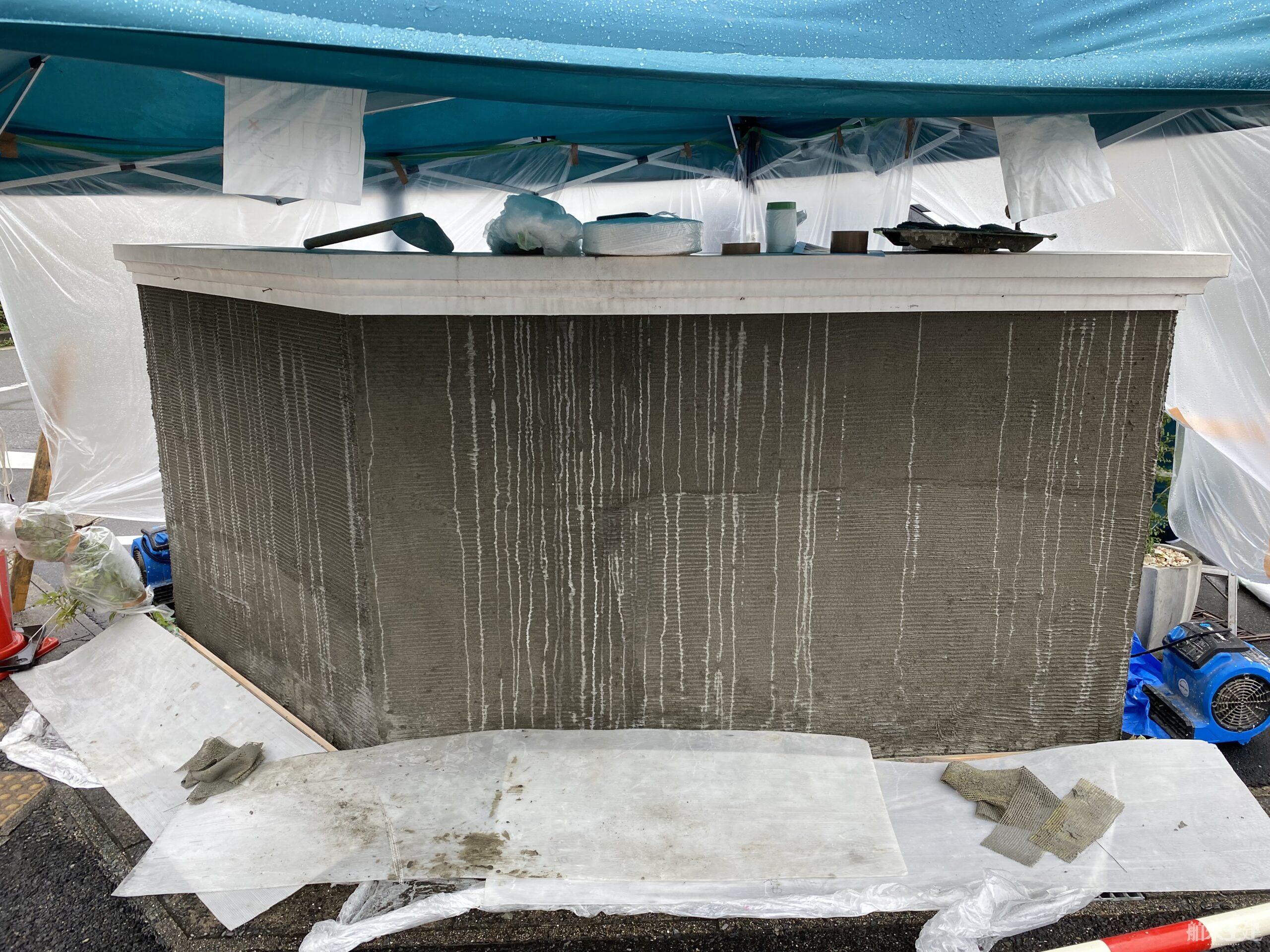 初日は造形モルタルを塗り付け