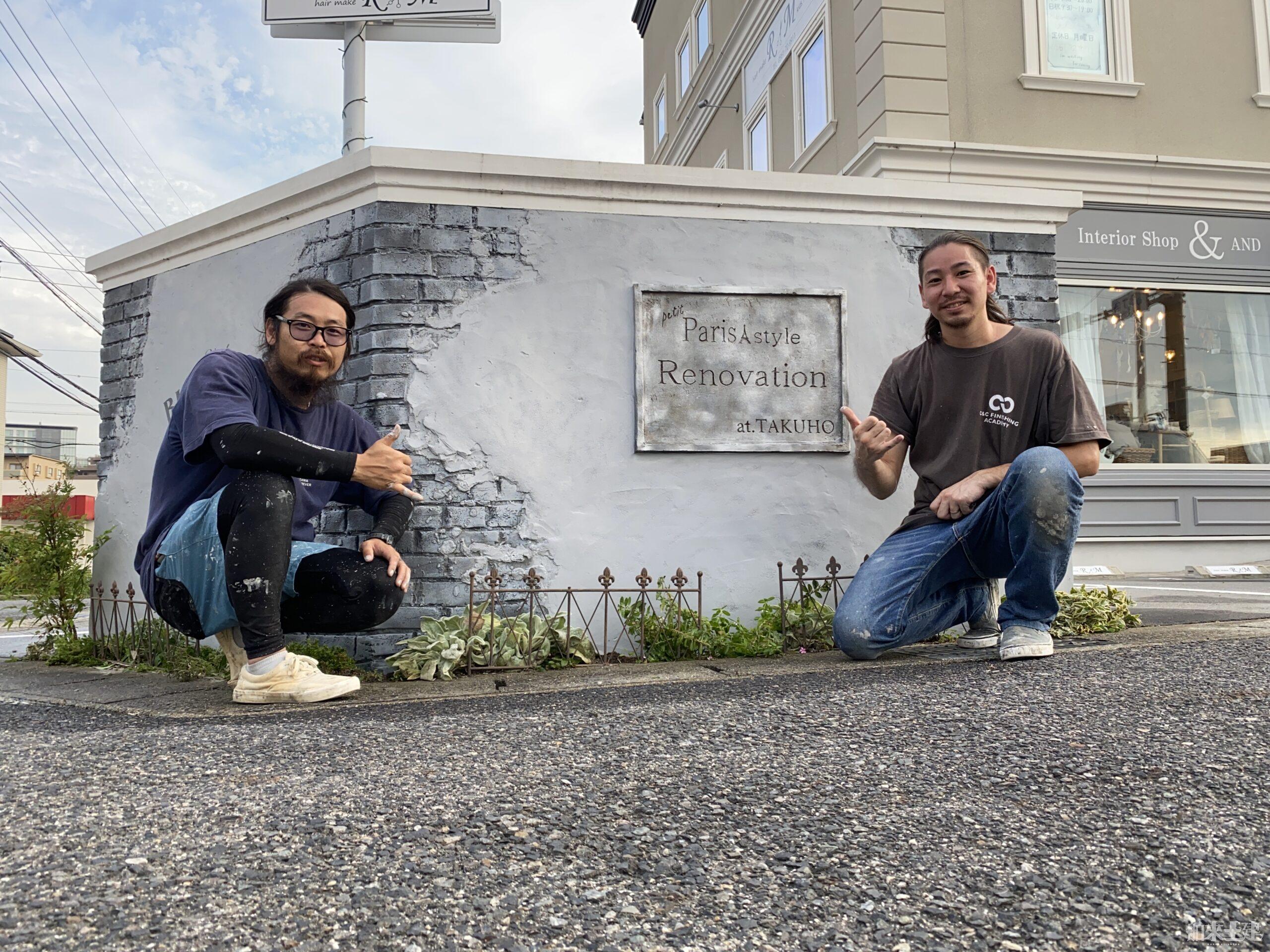 元々の塀に造形モルタル「デザコンウォール」で