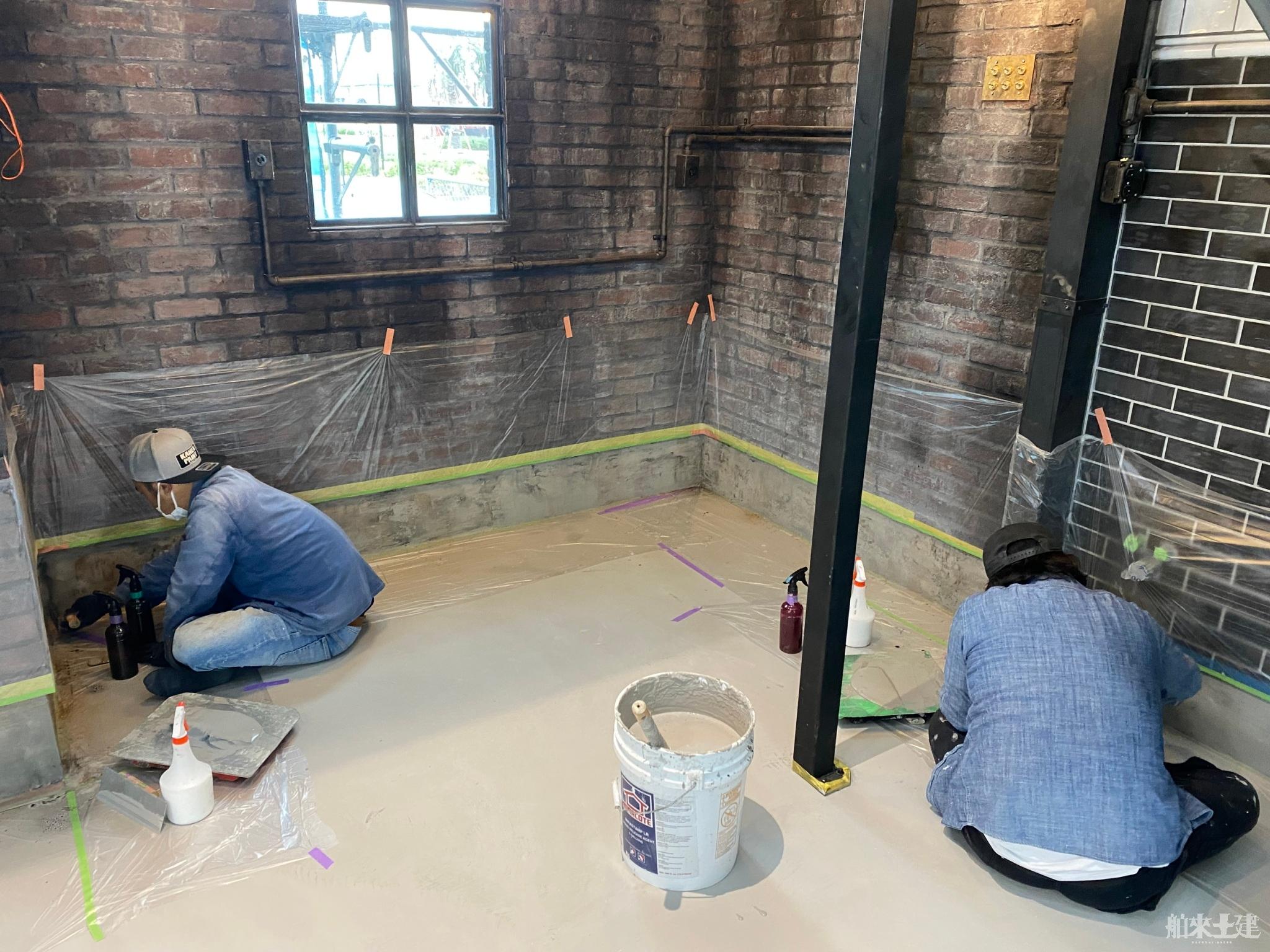 黒や茶系を施工中に練り混ぜ施工してます