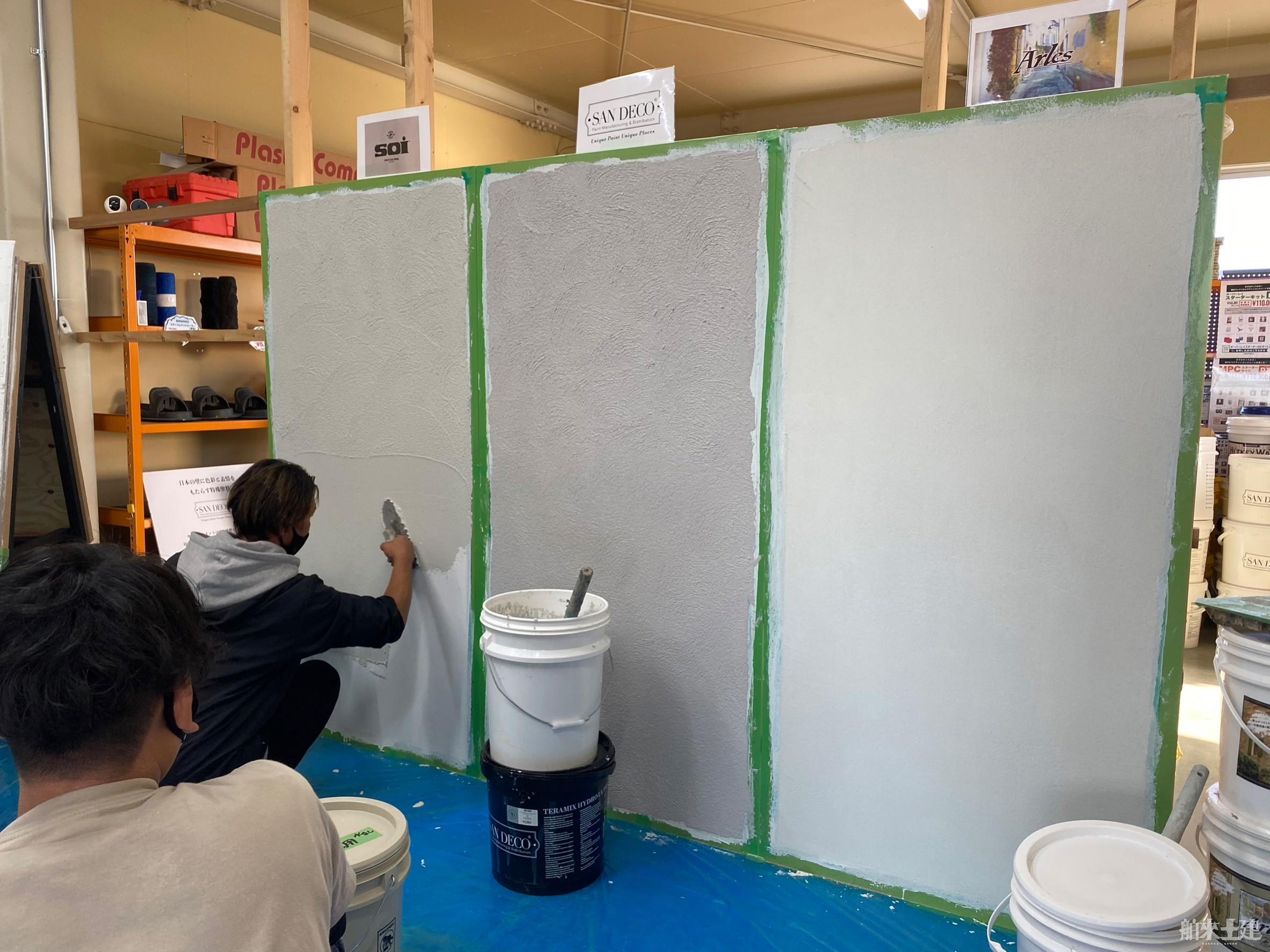 3種の仕上げ材の施工とテクスチャーについて実践