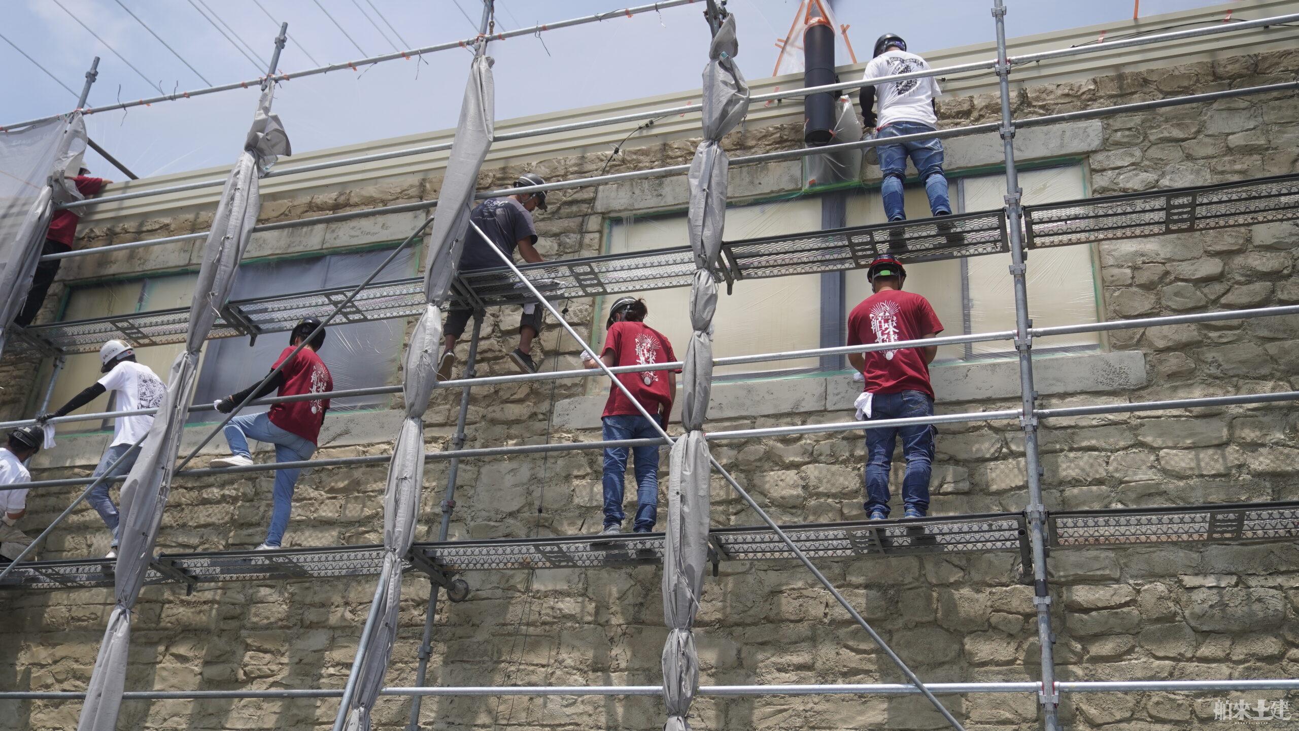 弊社の外壁はさらに何屋さんか分らないような凝ったビジュアルとなりました笑